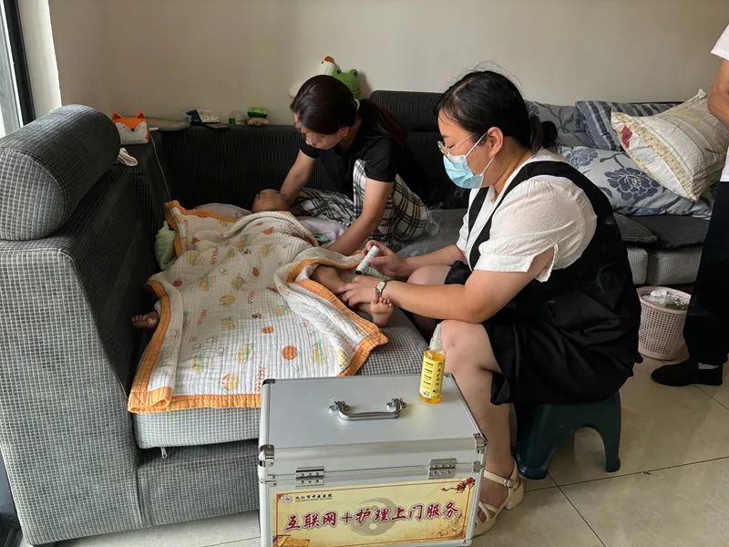 据了解,该患儿饱受化疗后恶心呕吐的困扰,由于因年龄小、抵抗力低、外出就医不便,患儿家属预约了上门护理服务。接到订单后,接诊医生评估了患儿的病情和中医辨证分型后,“互联网+护理”服务小组选派梅育红和邓琪琦两位经验丰富的护理人员上门。