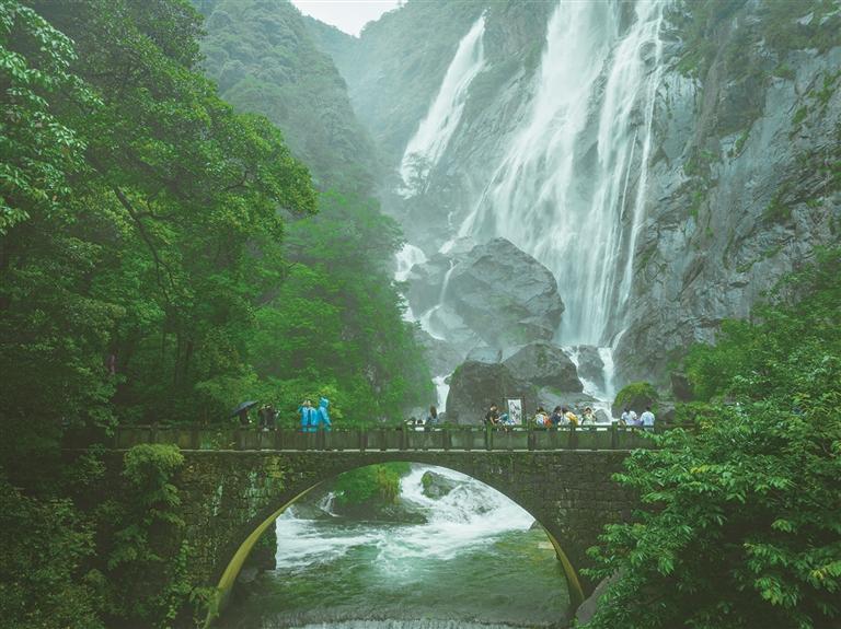 日前,烟雨迷蒙的卧龙谷美如仙境。婺源大鄣山卧龙谷景区地处皖赣边界,高达90.7%的森林覆盖率孕育出最原始的高山峡谷奇观。雨后,飞龙吐玉般的瀑布从峭壁垂落,俨然一幅流动的天然水墨丹青。 程利军 摄