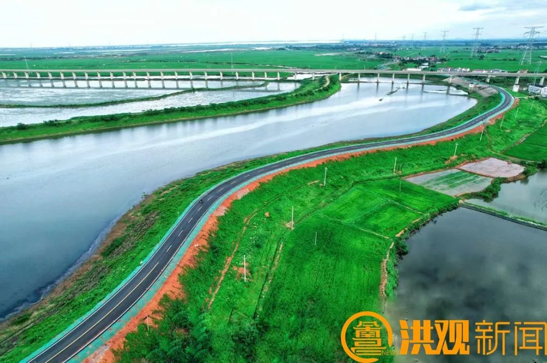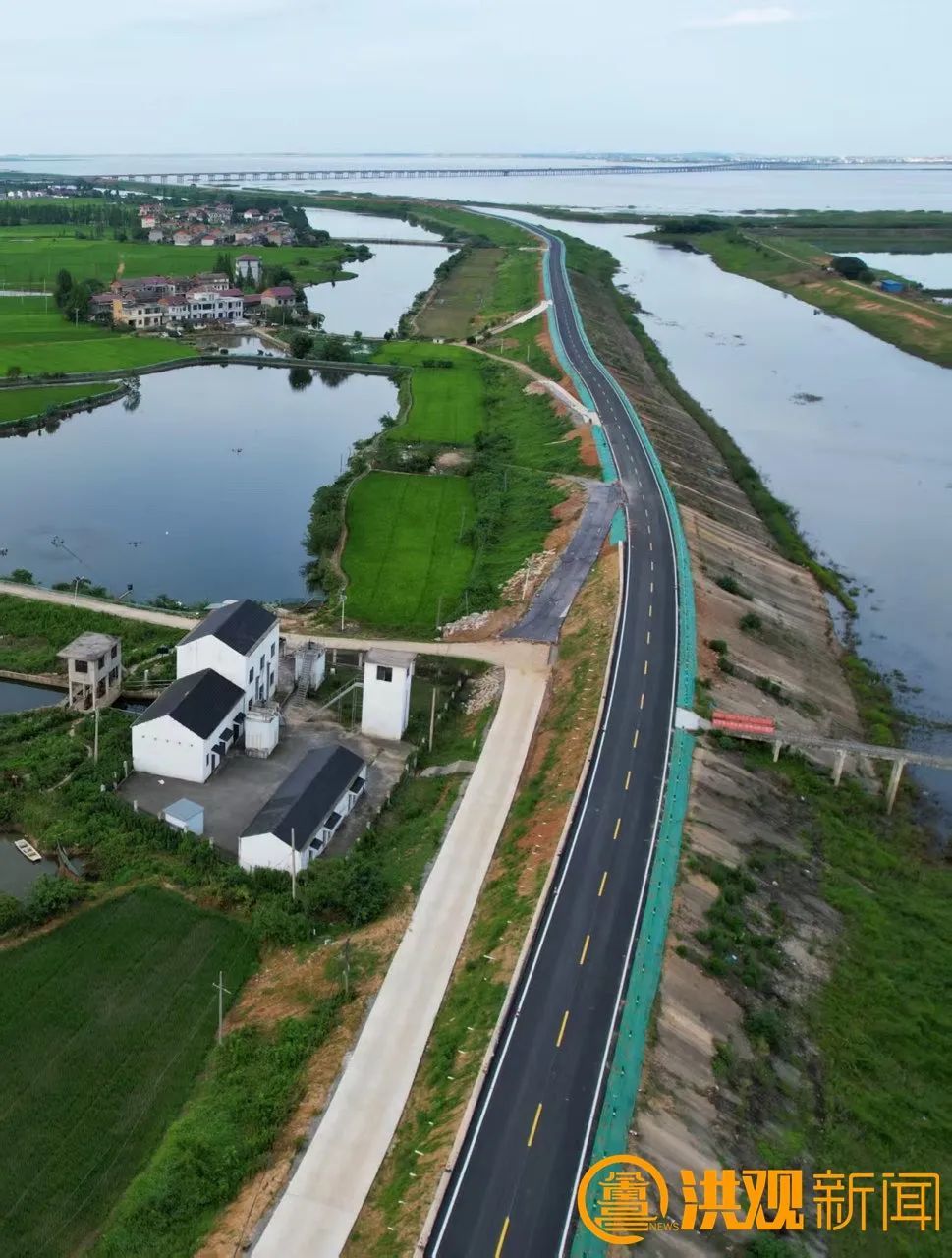 如今,环鄱阳湖堤顶公路应急保通工程已全面完工。崭新的沥青混凝土路面、绿色的护栏等重要设施一应俱全,车辆畅行无阻。