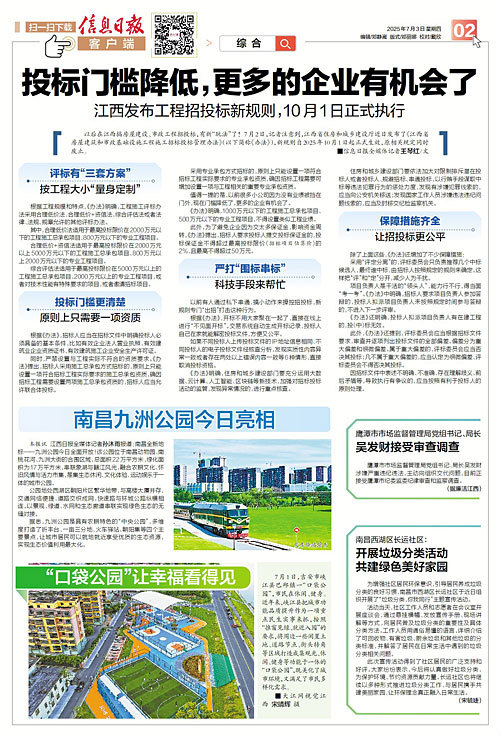 以后在江西搞房屋建设、市政工程招投标,有新“玩法”了!7月2日,记者注意到,江西省住房和城乡建设厅近日发布了《江西省房屋建筑和市政基础设施工程施工招标投标管理办法》(以下简称《办法》),新规则自2025年10月1日起正式生效,原相关规定同时废止。