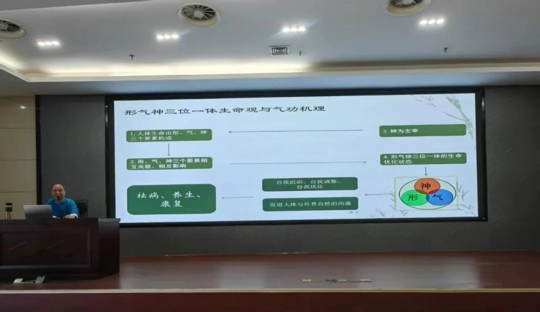 近日,九江市中医医院岐黄经络研修班开展健身气功明目功法培训活动,由国家一级武术裁判任镇民主任进行功法教学。