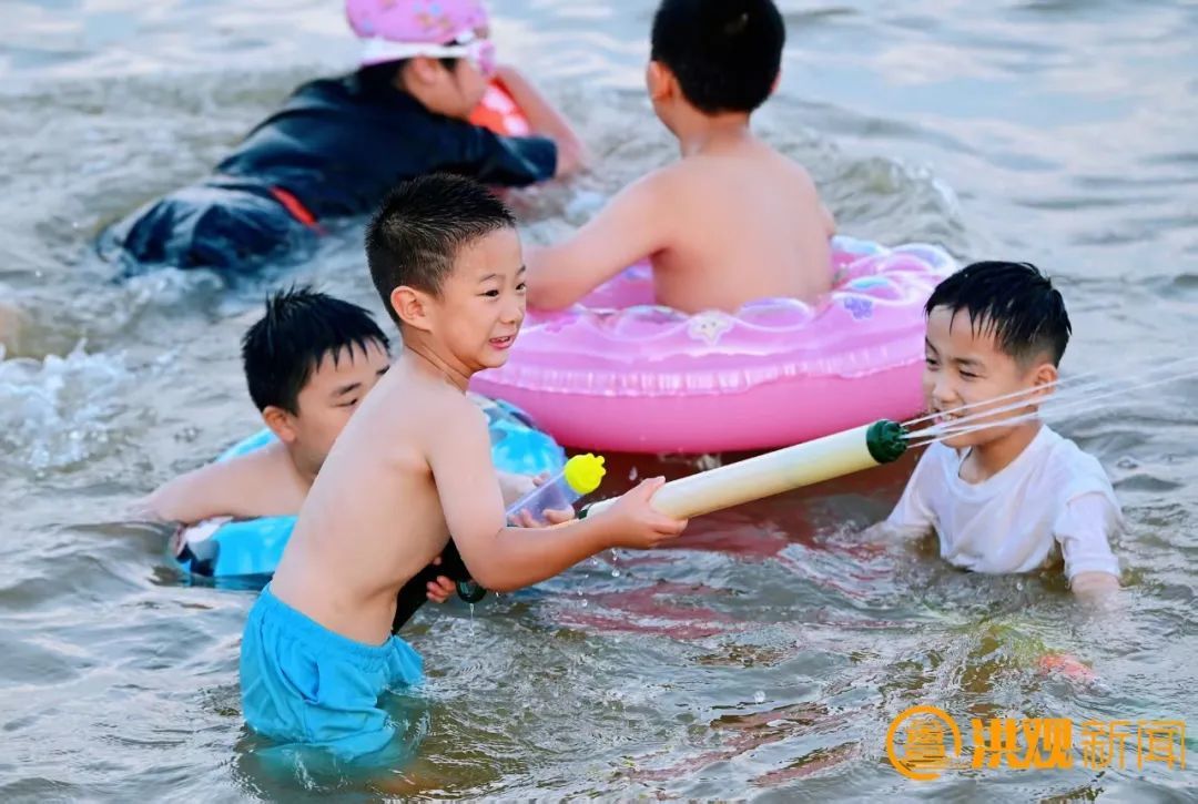 顺着江岸一路往南走,七星湾满是亲子间的欢声笑语。500米长的水岸线旁,缓坡入水的浅滩中,孩子们套着各式各样的卡通泳圈,像一群快乐的小鸭子在水里嬉戏。岸边的遮阳区里,家长们一边留意着水中的孩子,一边聊着家常。“这儿的浅滩太适合孩子了,水刚到膝盖,让人特别放心。”家住附近的王艳正帮女儿擦着湿漉漉的头发,小姑娘手里紧紧攥着刚捡到的贝壳,兴奋地向妈妈展示自己的“战利品”。