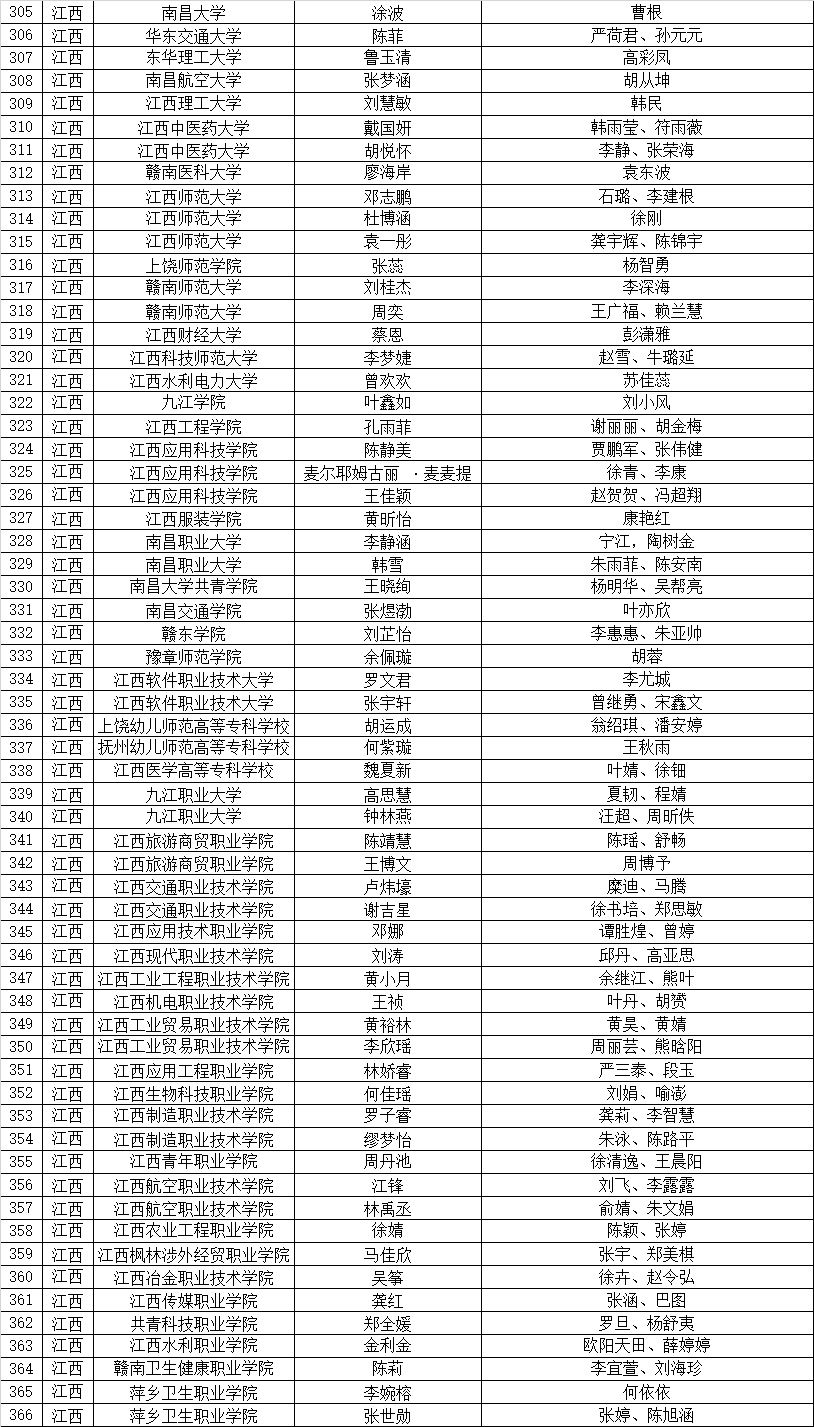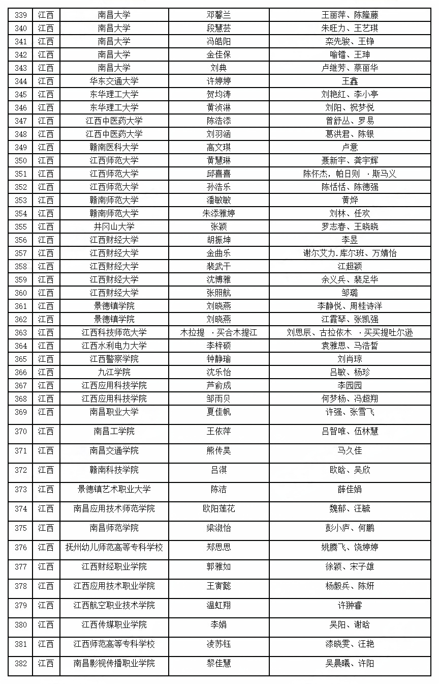 暑期社会实践志愿服务活动协同团队名单(江西)