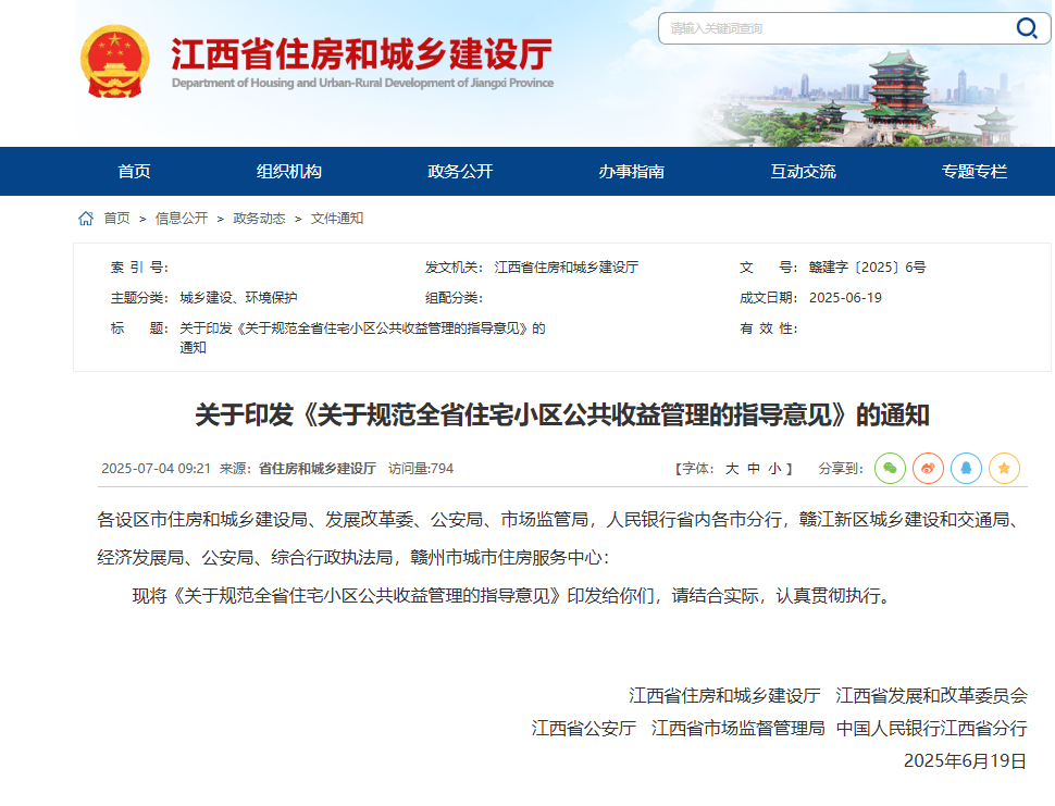 近日,江西省住房和城乡建设厅、江西省发展和改革委员会、江西省公安厅、江西省市场监管局、中国人民银行江西省分行联合印发《关于规范全省住宅小区公共收益管理的指导意见》(以下简称《意见》),将从10月1日起全面规范住宅小区公共收益管理。
