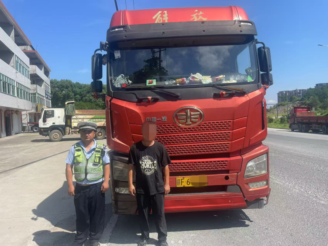 6月25日,南城公安交警在206国道巡逻时,接到预警提示,一辆车牌号为赣F61***的重型半挂车牵引车涉嫌疲劳驾驶。民警追踪至206国道杨家坊路段发现该车,车主拒不停车接受检查,最终在212省道环城东大道成功将该车拦截。