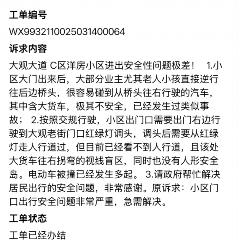 宜春市上高县大观天地小区居民反映门口不安全望增设人行道。