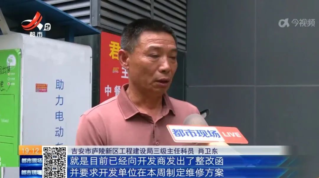 庐陵新区工程建设局回复:目前已经向开发商发出了整改函,并要求开发单位在7月6日前制定维修方案,现场进行论证后,立即进行施工维修。