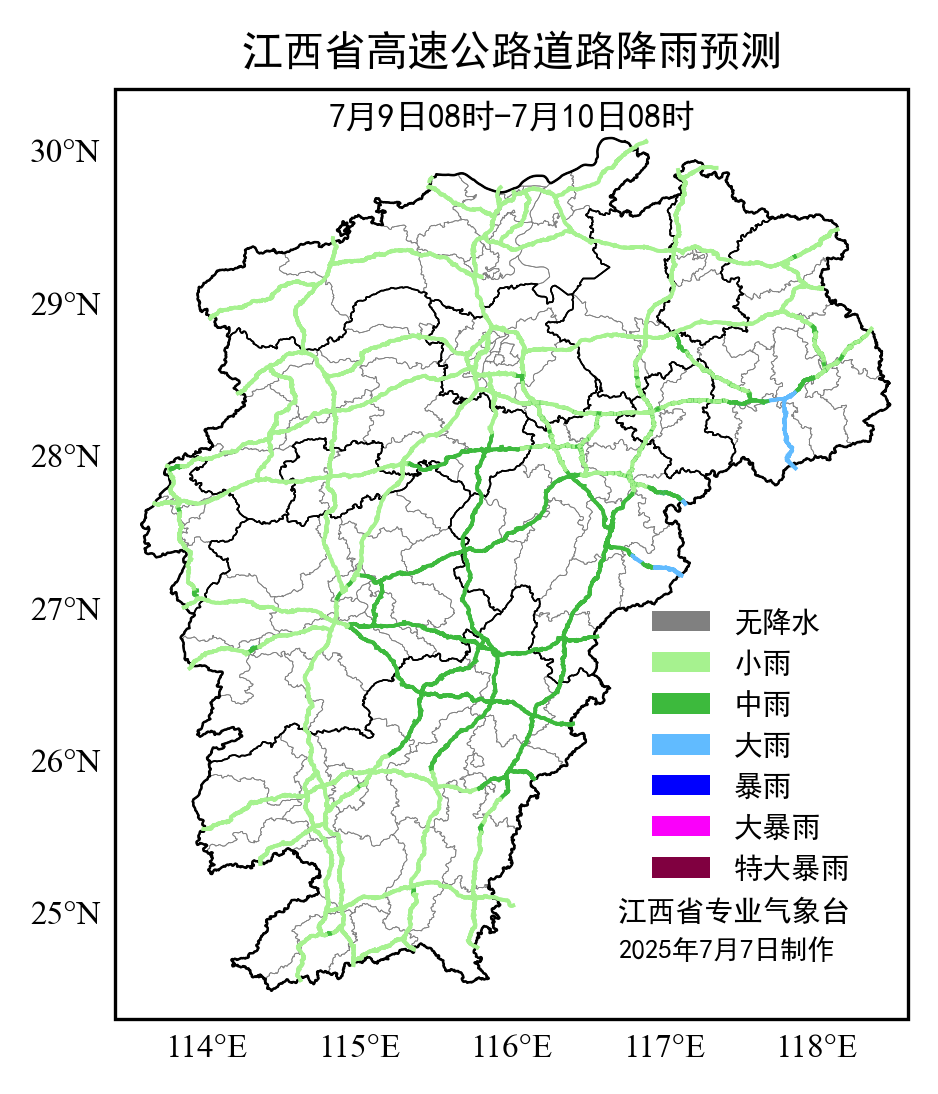 9日至10日,江西省境内G70福银高速温沙段、G60沪昆高速梨温段、G1514宁上高速上武段、S46抚吉高速资溪段等4条高速公路及赣州市、吉安市境内普通公路可能受大雨影响。