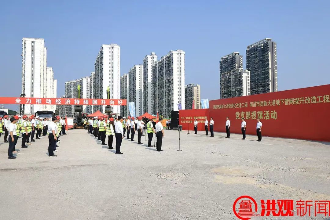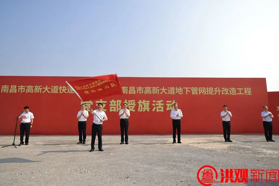 7月8日,高新大道快速化改造工程项目党支部授旗活动举行。省委常委、南昌市委书记、赣江新区党工委书记李红军为项目党支部授旗。市委常委、市委组织部部长刘建军,市委常委、市委秘书长赵捷,副市长江新洪参加。