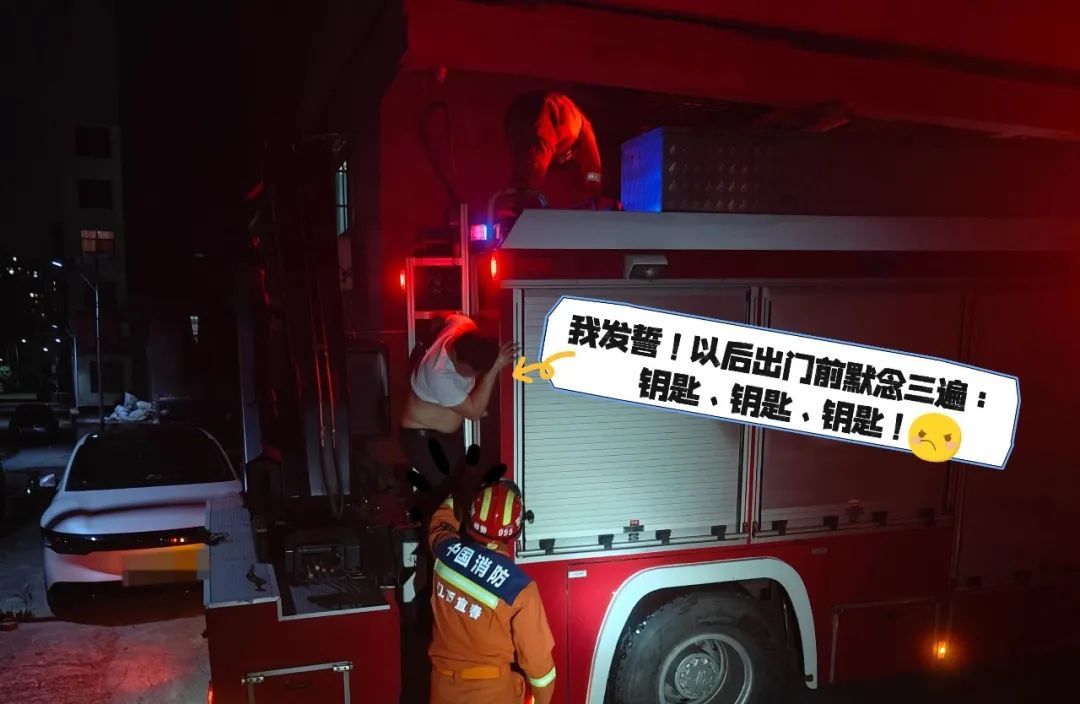据了解,该男子外出准备回家时发现忘记带钥匙,试图从三楼翻越窗台进入二楼屋内,但中途体力不支导致被困,妻子见此情况立即拨打119报警求助。