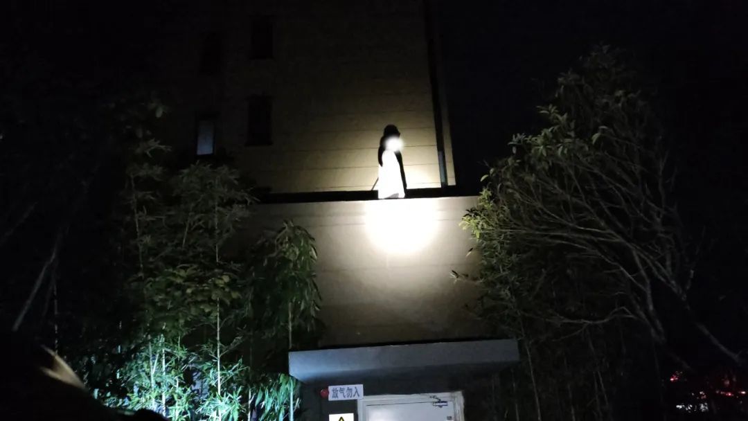 浙江金华,一小区内一名女子忘带钥匙爬楼被困在距离地面3米多高的平台上,其丈夫在一楼焦急等待。