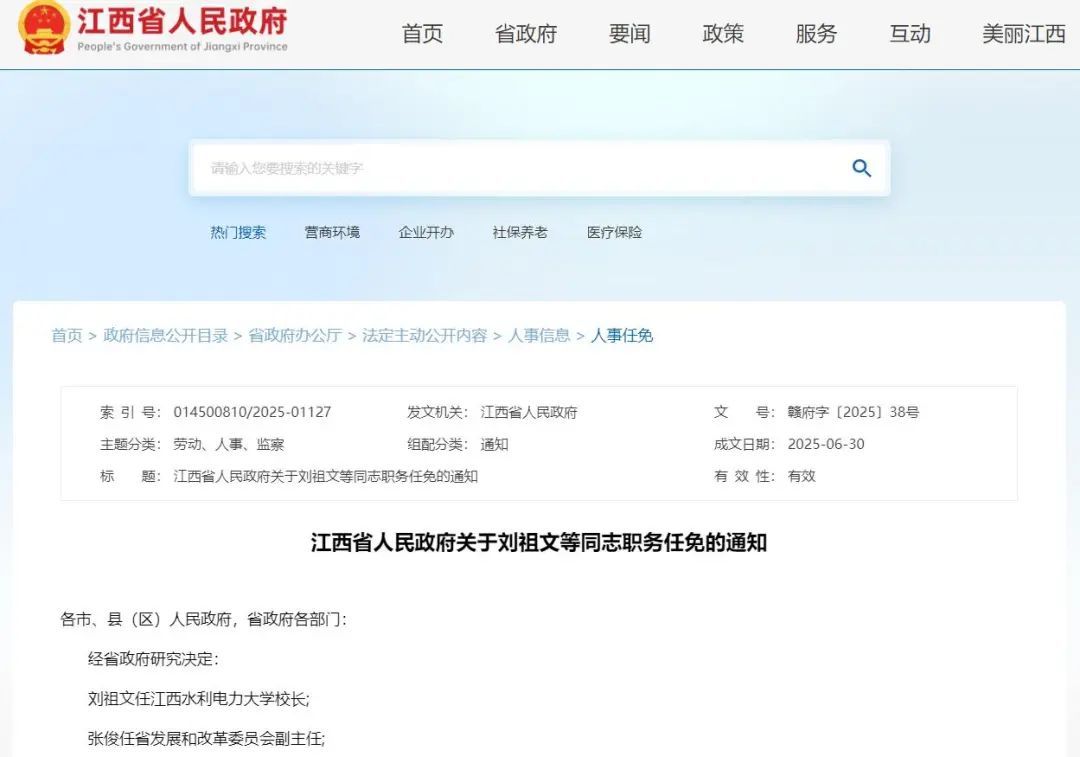 江西省人民政府关于刘祖文等同志职务任免的通知