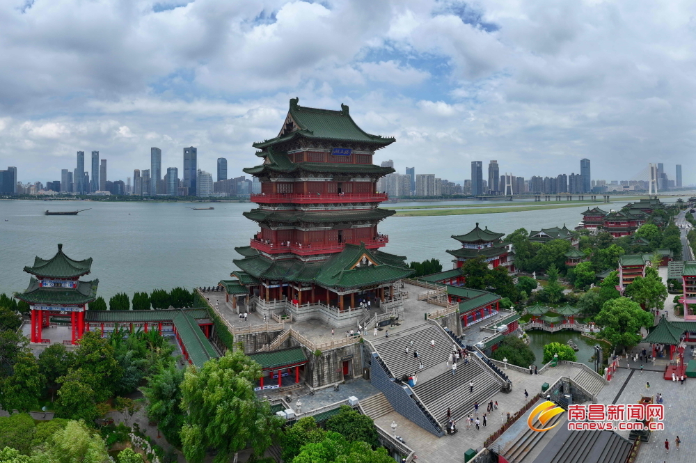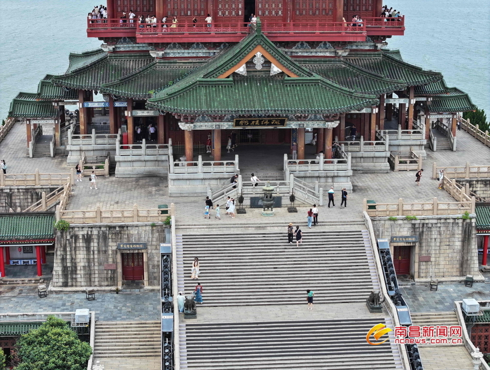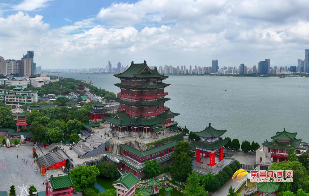 南昌新闻网讯 7月9日,在南昌滕王阁景区,巍然屹立于赣江边的滕王阁,尽显千年古韵,景区内游人如织,来自四面八方的游客正在景区内欣赏美景。