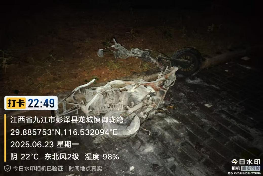 2025年6月23日,九江市彭泽县龙城镇御珑湾10栋旁一电动自行车静止状态起火,未造成人员伤亡,火灾直接财产损失900元。