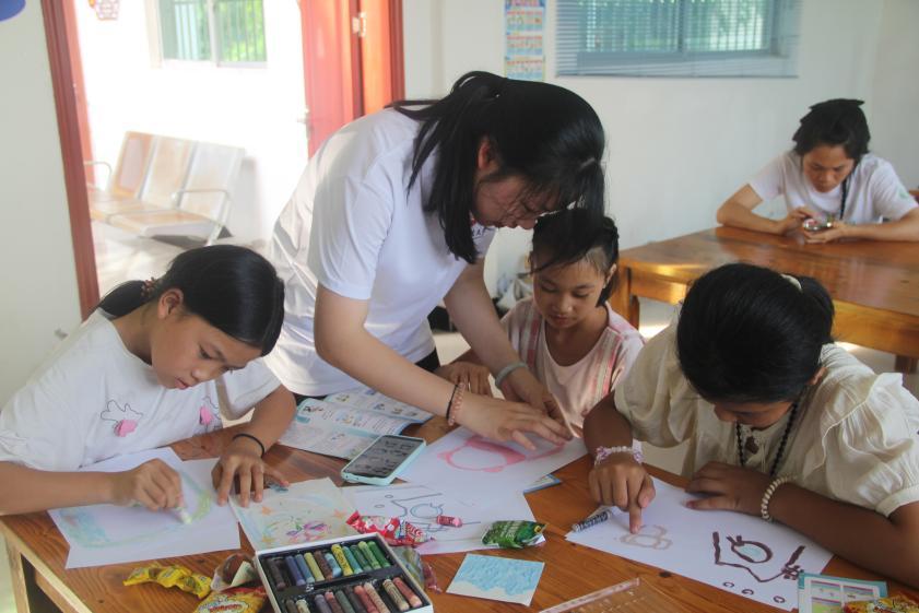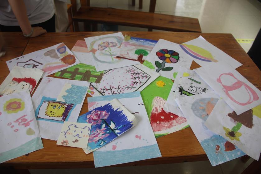 油画棒教学区,志愿者的围裙蹭上了柠檬黄与湖蓝色,她握着留守儿童的小手画出歪歪扭扭的彩虹,那些落在画纸上的笔触,分明是点亮心灯的星火。