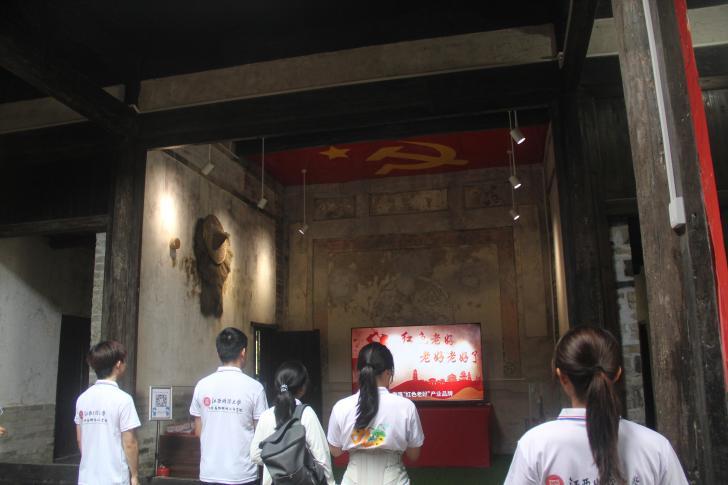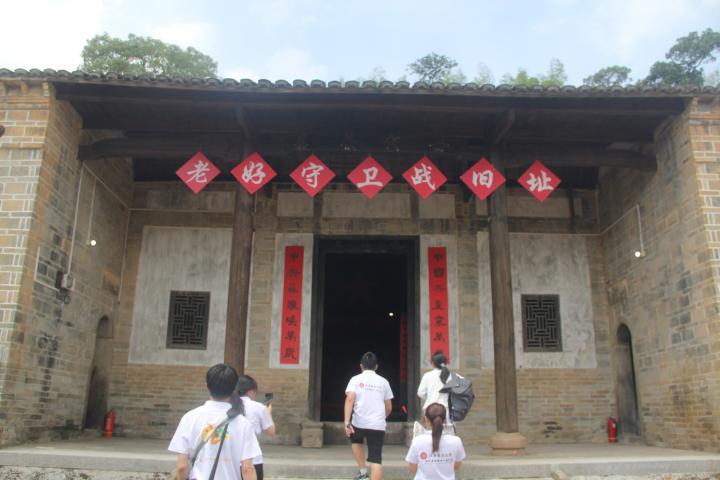 实践重温英雄印记,赓续红色血脉。正午的太阳晒得石板发烫,实践团踩着重叠的脚印走进老好保卫战遗址。陈列馆里,鸟铳的锈迹凝结着八十载风雨,土炮的膛线里仿佛还回荡着当年的枪声。宣传干事陈星灿的讲解道:“看这弹痕,当年游击队员就是用这样的土武器守住了山坳。”有队员伸手触碰斑驳的土墙,指尖触到的不只是粗糙的泥灰,更是革命岁月的体温。当《十送红军》的旋律从手机里响起,年轻的嗓音与历史的回声在空谷间交织,惊起一群衔着红色记忆的山雀。