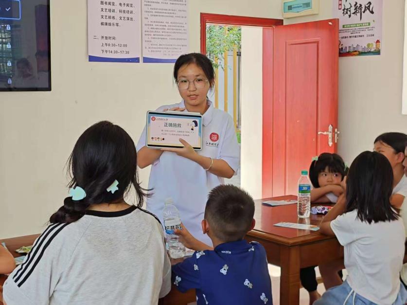 午后的蝉鸣渐次温柔,仕湖实践所的玻璃窗映出三十二个活泼的身影。志愿者以“大姐姐”的亲切形象迅速拉近与孩子们的距离,通过模拟情景演示落水自救方法,细致讲解防溺水“六不准”。
