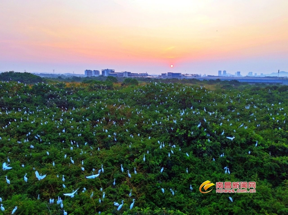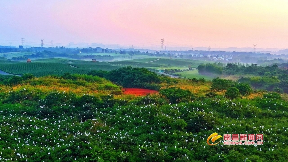 南昌新闻网讯 7月8日清晨,在赣江新区神农岭本草科技园,数千只白鹭栖息于丛林枝头,时而飞舞,时而嬉闹,构成一幅人与自然和谐共生的生态画卷。