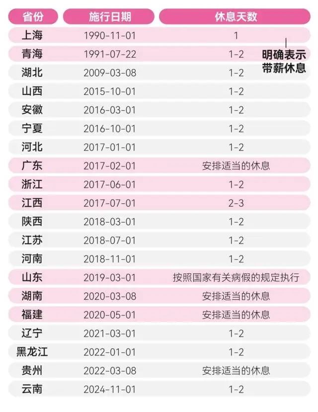 多地关于“痛经假”规定已然施行