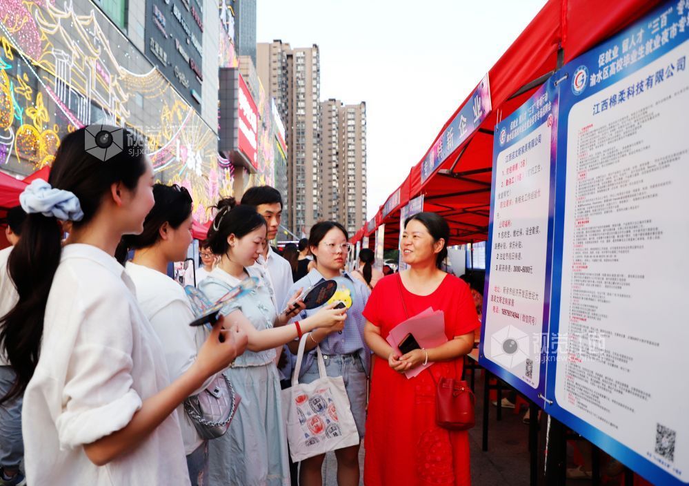 7月11日晚,由江西省新余市渝水区人社局、区就业创业中心、城北街道联合举办的“高校毕业生就业夜市专场招聘会” 在恒太城广场火热开启,50余家企业“摆摊”亮岗,提供近千余高质量就业岗位,涵盖电子信息、智能制造等多个领域,吸引了众多求职者前来应聘。 来源:大江网-视觉江西 廖海金 摄