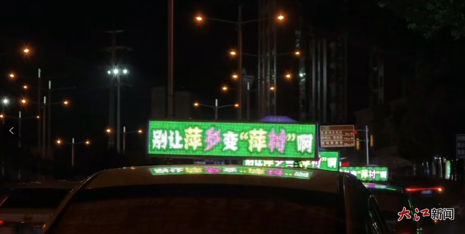 除了官方互相发文“喊话”外,萍乡随处可见的出租车也在为家乡萍乡加油鼓劲,打响“笔画保卫战”“别让萍乡变萍村”……据这些出租车广告的运营商——萍乡全域传媒负责人介绍,他们是萍乡700台出租车的广告独家运营商,这次“赣超”让大家感受到了足球的魅力与激情,想要通过出租车广告屏幕这个流动的平台,为萍乡加油鼓劲。
