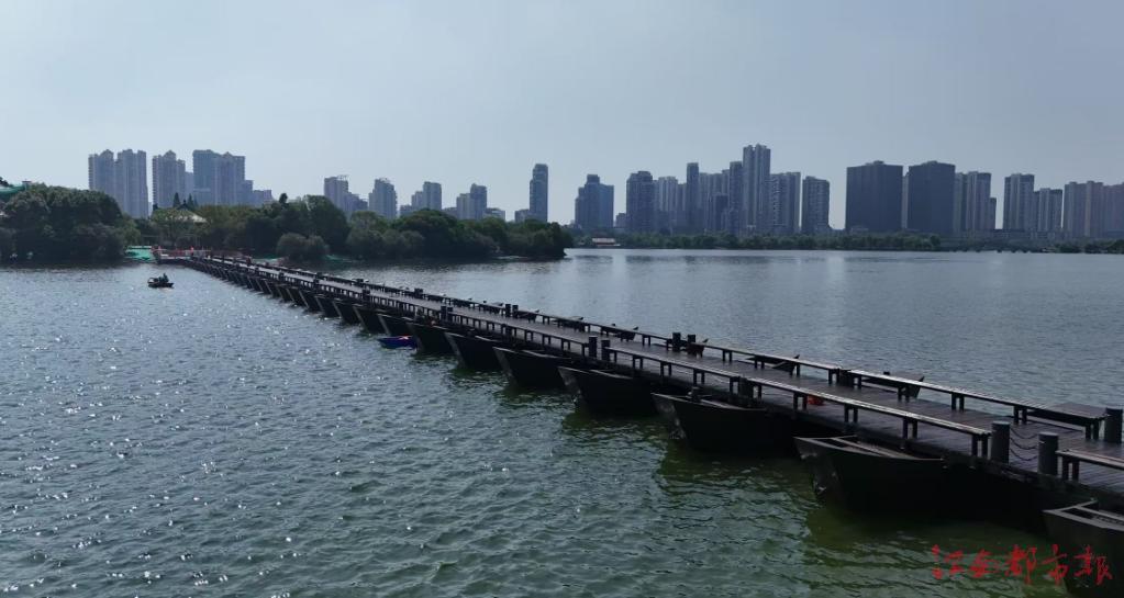 ①南昌首座钢架浮桥:由39艘钢浮船构筑而成;