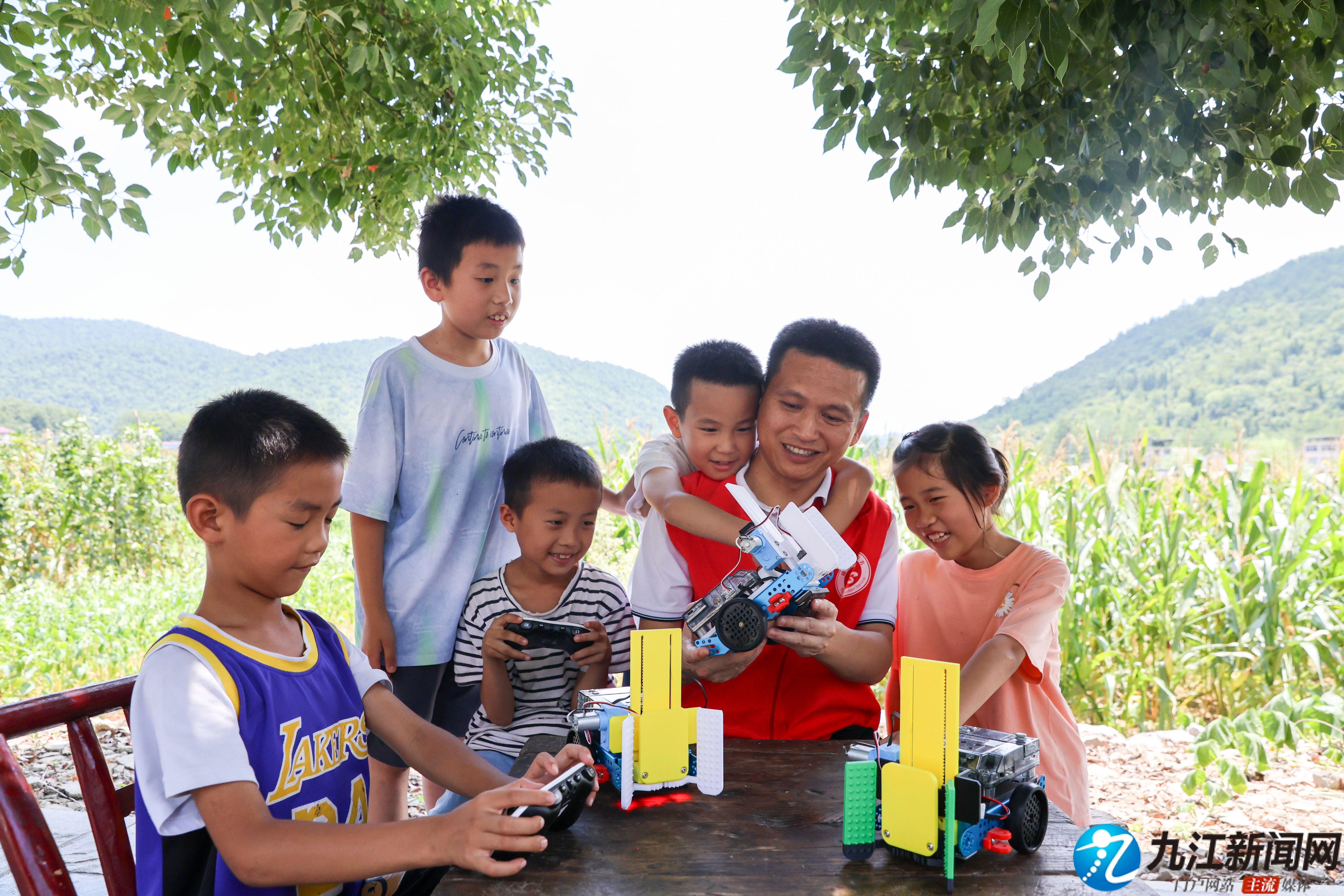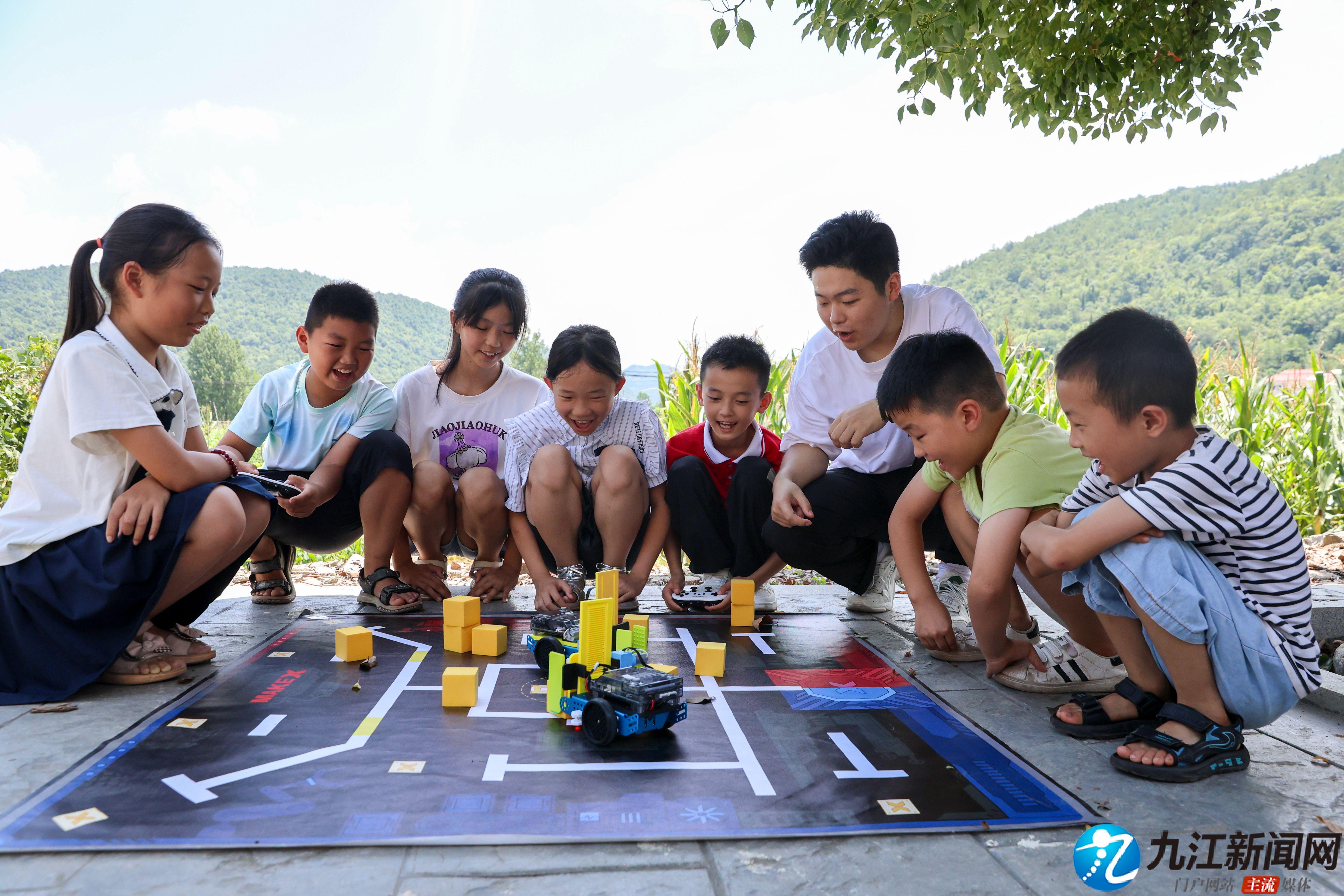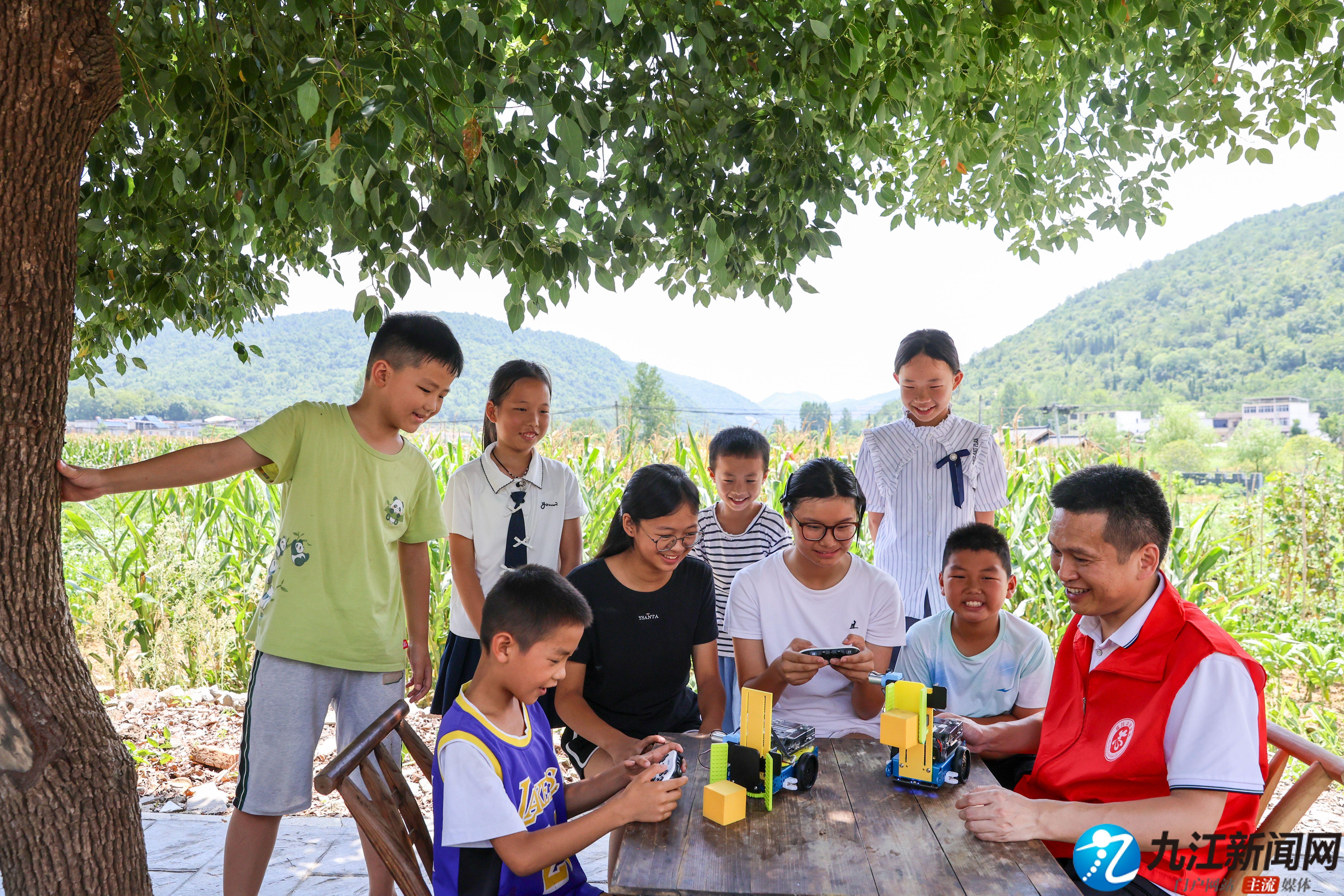 日前,瑞昌市肇陈镇建坪村,孩子们在学习机器人知识。当日,科普志愿者为山里娃组织了一场机器人科普活动。孩子们通过聆听讲解、观看演示并亲手操作,学习了搬运机器人的结构原理与操控方法,近距离感受科技魅力,体验科技知识带来的乐趣。(张子君 九江日报全媒记者 张驰 摄)