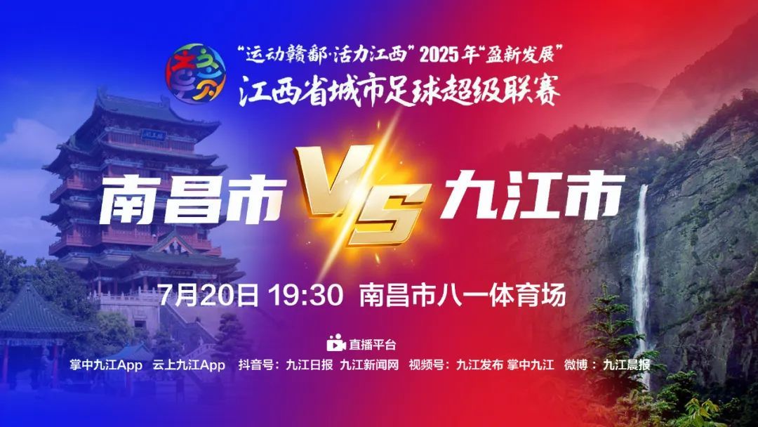 这是一场不容错过的城市对决,是赣超开赛以来最受瞩目的焦点之战。九江队将以控球为主、稳中求胜,派出最强阵容迎战南昌劲旅。而场下的较量,九江球迷的声浪也将成为“第十二人”,与球队并肩作战!不能到现场的球迷朋友请锁定九江市融媒体中心七大平台直播,不在现场也能身临其境,为九江呐喊助威!记住七个平台——掌中九江APP、九江新闻网抖音号、九江发布视频号、云上九江APP、九江日报抖音号、掌中九江视频号、九江晨报微博,我们不见不散!