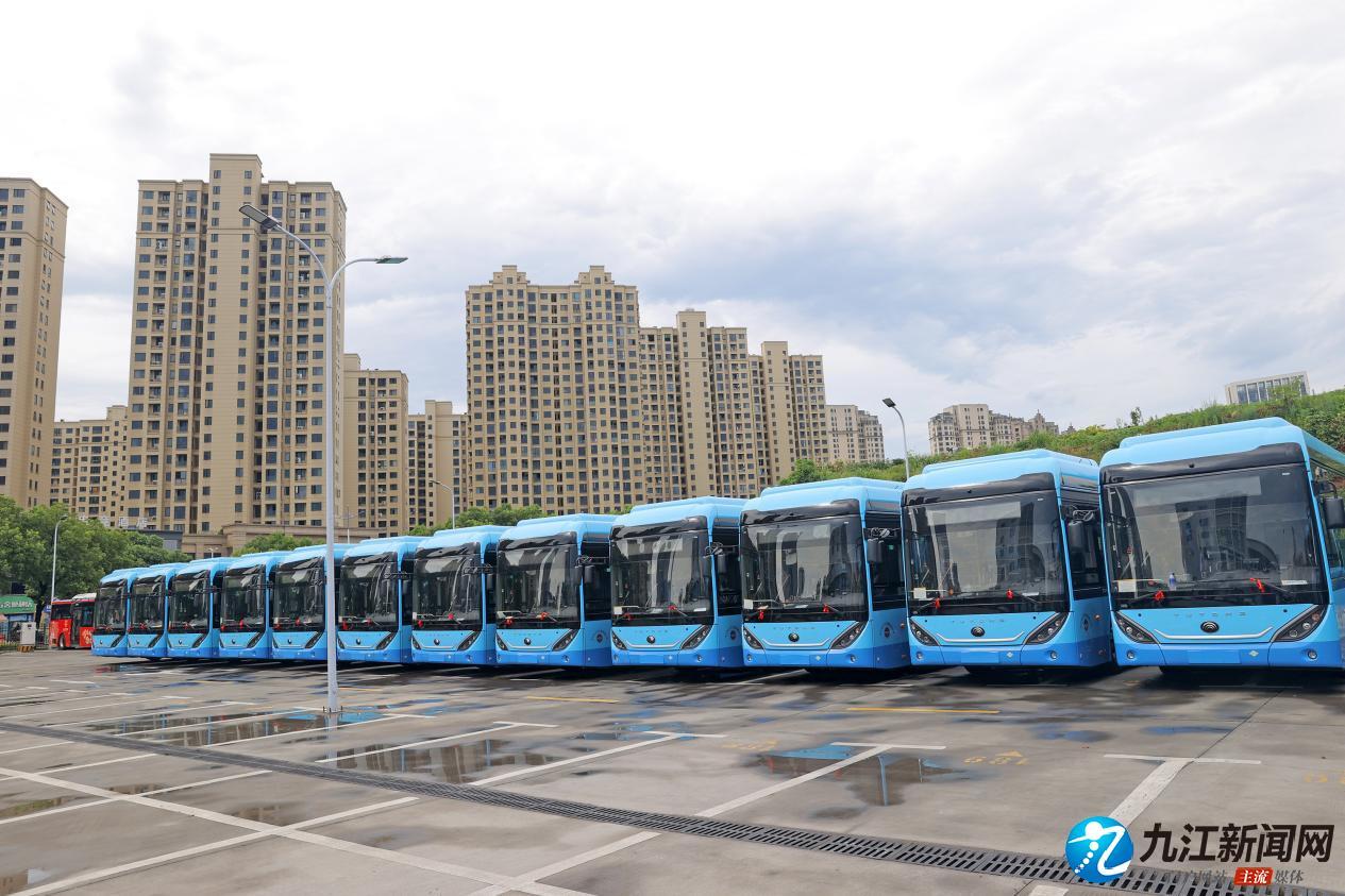 近日,我市新购置15辆氢燃料电池公交车顺利抵达九江。市公交集团正在办理车辆登记挂牌手续,预计7月下旬可正式投入公交19路运营,这将是江西省第一条氢燃料公交线路。公交19路从浔阳区往返城西港区,连接多个居民区、商业区、园区和学校,客流量较大,且途经中石化江西九江石油分公司城西港加油加氢站。氢燃料电池公交车投入19路运营,不仅能为广大市民提供更加绿色、舒适、环保的出行体验,也能充分发挥氢能源车辆的示范作用,助力全市氢能产业的发展和推广。(九江日报全媒记者 刘家 摄)