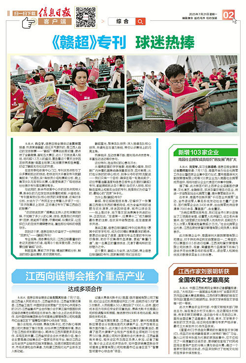 本报讯 信息日报全媒体记者左阳天报道:7月17日,由江西省人民政府主办,江西省贸促会、江西省发展改革委、江西省工信厅、中国贸促会贸易推广交流中心共同承办的2025江西省重点产业合作推介会于第三届中国国际供应链促进博览会期间在北京举办。推介会上还达成多项合作,如中国供销集团新合作邻里商业管理有限公司和南昌市红谷滩区签下“智慧型邻里中心综合体”项目。