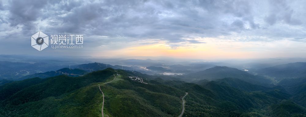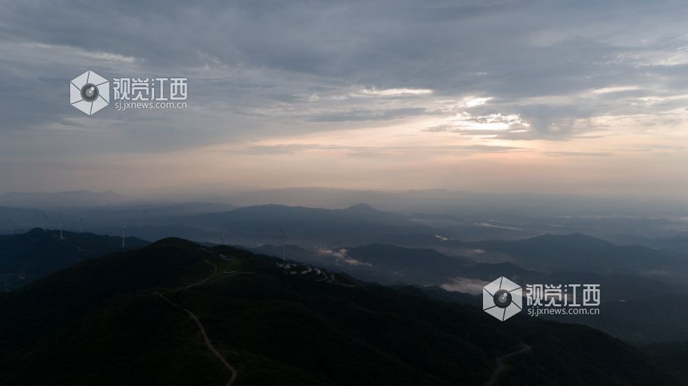 7月17日傍晚,江西石城县八卦脑景区美如画卷。雨后的高山草甸带水珠,远山云雾缭绕,夕阳穿云洒金。山巅巨型风车与云影共舞,现代工业线条与草甸柔媚相映成趣。雨后初现的帽子云“戴”在峰峦顶,被夕阳镀上金边,宛如鎏金礼帽。草甸绿、风车银、云霞金、帽云白,在镜头下交织成流动的画,令游人沉醉。