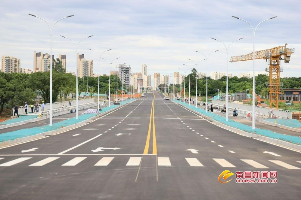 南昌新闻网讯 7月20日记者获悉,位于红谷滩区九龙湖的吉安桥主线已实现贯通,正加快推进桥梁人行道面砖铺贴、桥梁喷涂等附属工程施工,建成后将畅通区域路网。