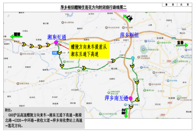 G60沪昆高速醴陵方向来车→湘东互通下高速→湘荷北路→G320→中环路→秋收大道→萍乡南收费站上高速往莲花方向。