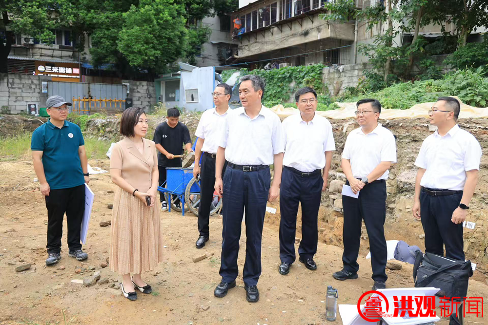 进贤仓历史文化街区考古又有新发现。7月22日,省委常委、南昌市委书记、赣江新区党工委书记李红军前往现场,调研进贤仓历史文化街区考古发掘及文物保护利用工作。市委常委、市委宣传部部长李松殿,市委常委、市委秘书长赵捷参加。