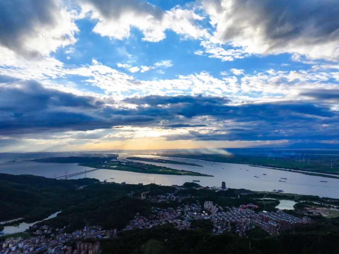 7月21日傍晚时分,江湖交汇处上空出现“丁达尔效应”气象景观,阳光从云层缝隙倾泻而下,如丝如缕,宛如梦境。“丁达尔效应”是一种光的散射现象,通常会出现在早晨、日落或雨后云层较多的时候。湖口县融媒体中心 沈海斌