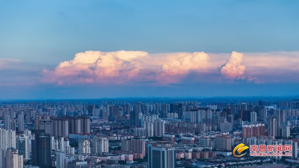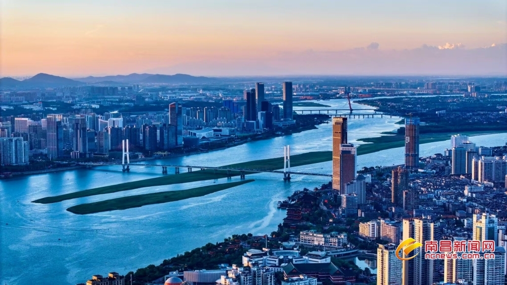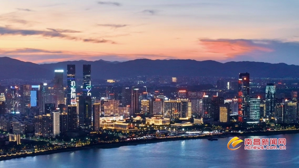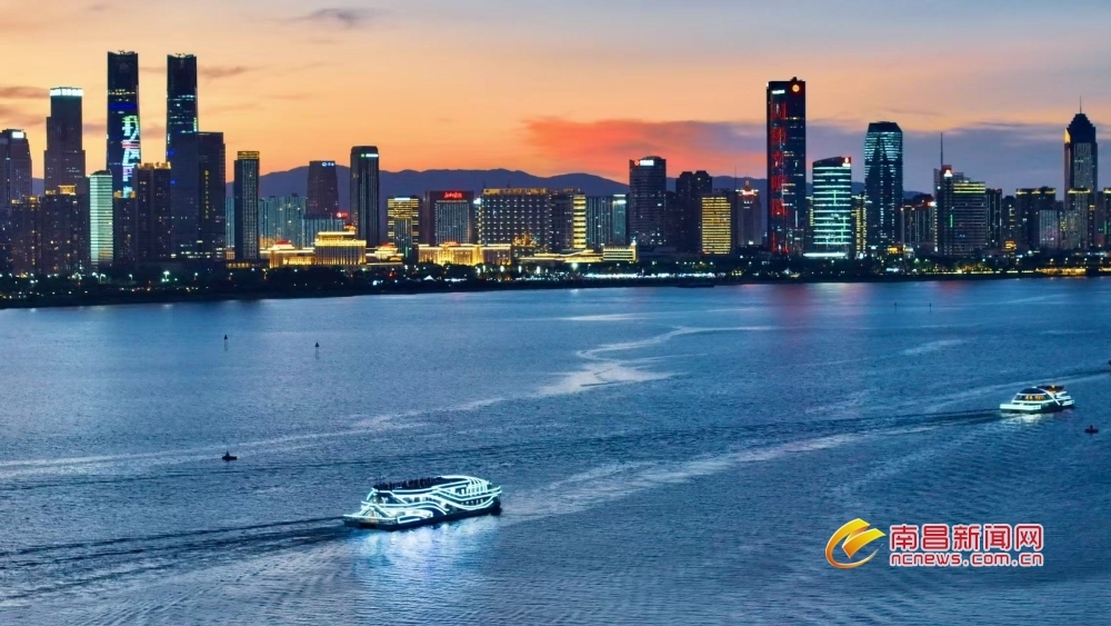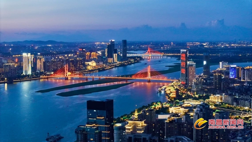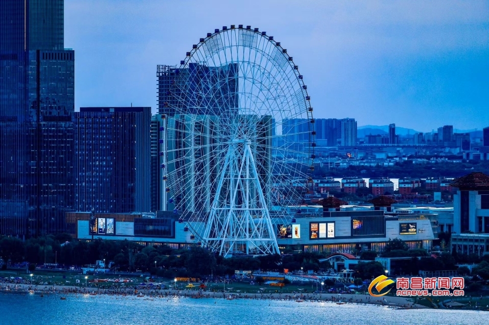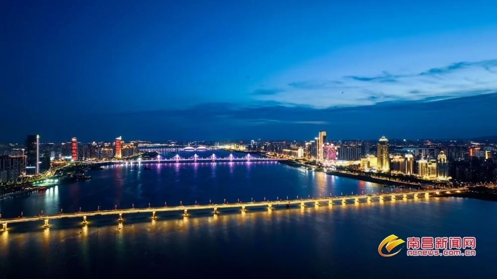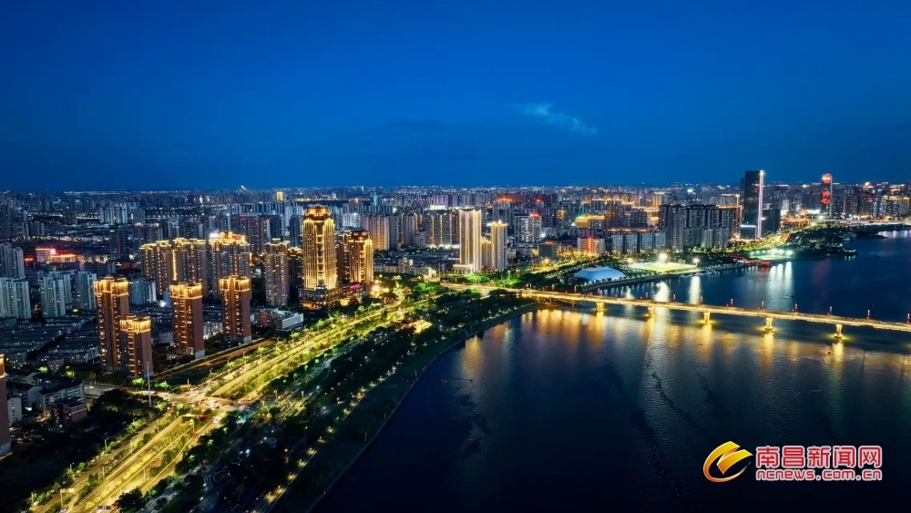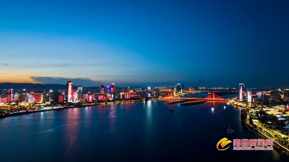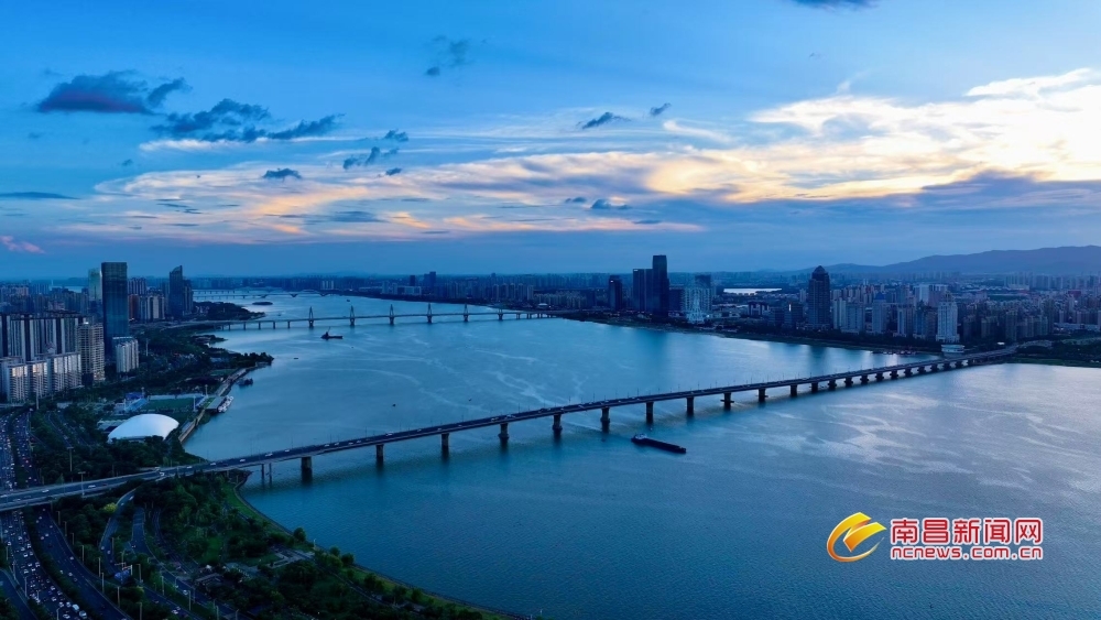 南昌新闻网讯 7月23日傍晚,当盛夏的落日在地平线边缘徘徊,天边晚霞渐渐隐去,取而代之的是一片深邃而迷人的蓝色,如同温柔的纱幔,缓缓笼罩南昌城,仿佛是大自然用最细腻的笔触,为这座城市绘制出一幅梦幻般的画卷。