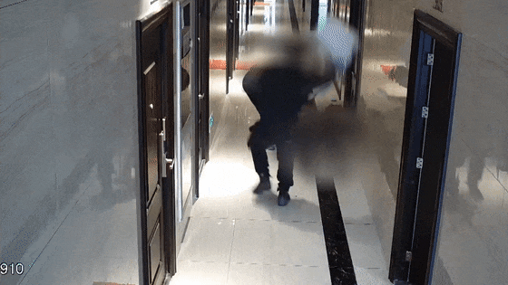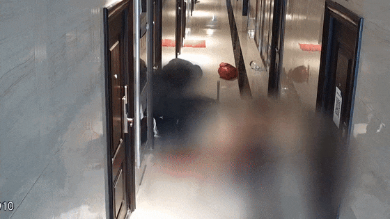 刘烈明抓起旁边的塑料水桶格挡持刀男子