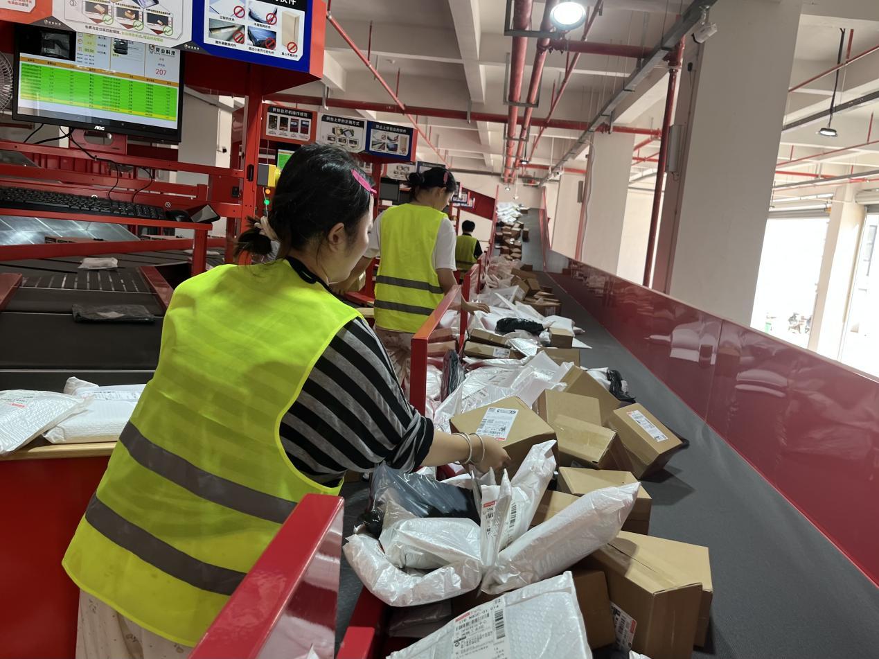 走进江西(文港)文笔数智产业园的智能分拣中心,只见全自动分拣线如行云流水般运转,机械臂精准抓取,传送带飞速流转。一包包快递在激光扫描下“秒速”识别,智能分拣机“眼疾手快”地将它们分门别类,精准投送至对应格口。不到片刻,整齐码放的包裹便整装列队,蓄势待发。