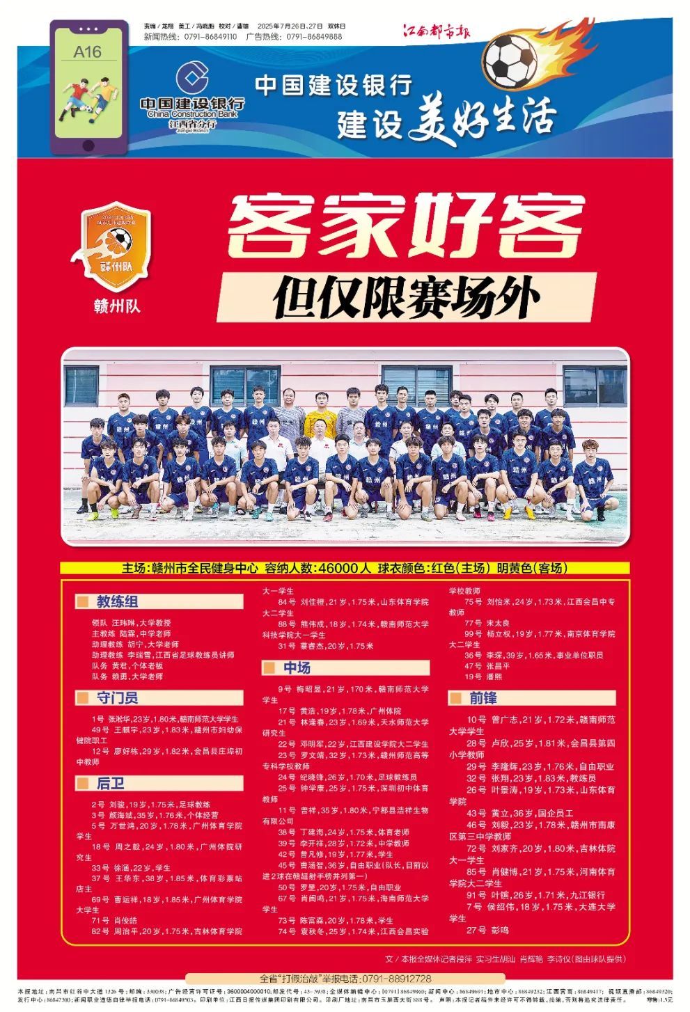 以球之名,为城而战! 江南都市报倾力打造16版《赣超队报》特刊,重磅发布2025年江西省城市足球超级联赛(赣超)11支参赛球队最全名单!