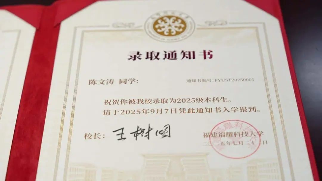 江南君从新建发布公众号获悉,近日,新建二中学生熊家霖、陈文涛收到福建福耀科技大学编号为FYUST20250001的录取通知书,成为这所新型研究型大学的首届学生。