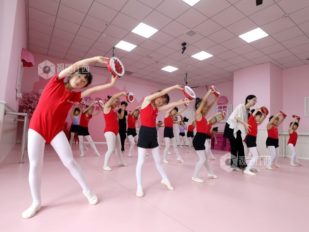 2025年7月25日,在江西省分宜县一家舞蹈艺术培训中心舞蹈训练房里,孩子们在老师的指导下练习舞蹈动作。暑假期间,不少孩子参加舞蹈培训,感受艺术魅力,快乐度暑假。 视觉江西 袁建兵 摄