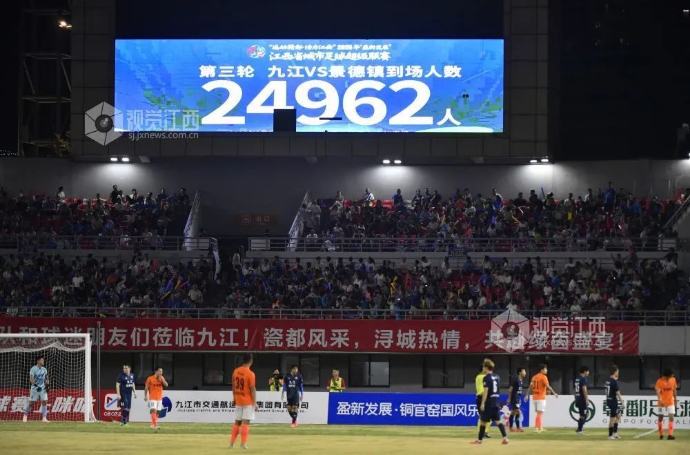 在这样的一个球场里,九江队为进场的近2.5万球迷奉献了一场酣畅淋漓的胜利,这样的周末狂欢夜,属于主场赢了球的城市,这样的一幕,接下来的4个月里,在赣鄱大地轮番上演。( 文/叶海波)