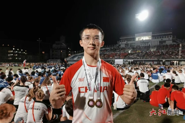 大江网/大江新闻客户端讯 全媒体记者孙沐雨 实习生吴佳芝、金睿、万思雨报道:近日,记者从铜鼓发布了解到,铜鼓县棋坪镇走出的运动员蓝炳望,在2025年世界跳绳锦标赛上,力压群雄,成功斩获公开组30+连续三摇跳、2×30s双摇接力这两个项目的金牌!