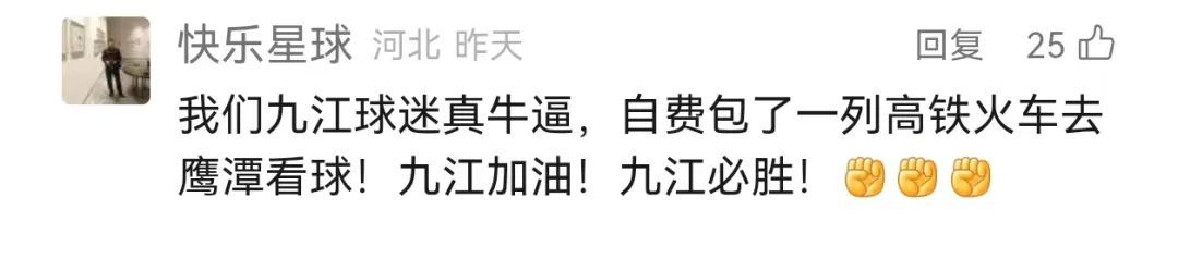 更有球迷搞笑玩梗:“即刻出征”“鹰潭准备好了吗?我们九江的旗子和鼓来了!”