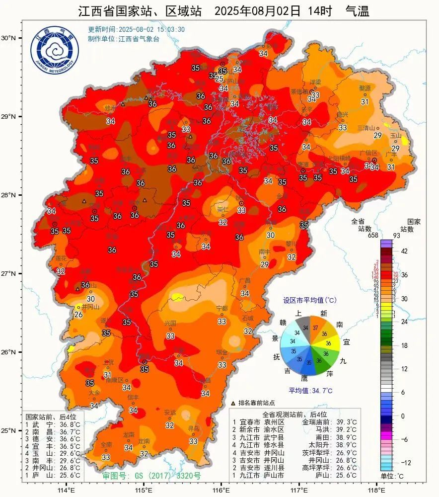 赣西北不少地方都突破了36度