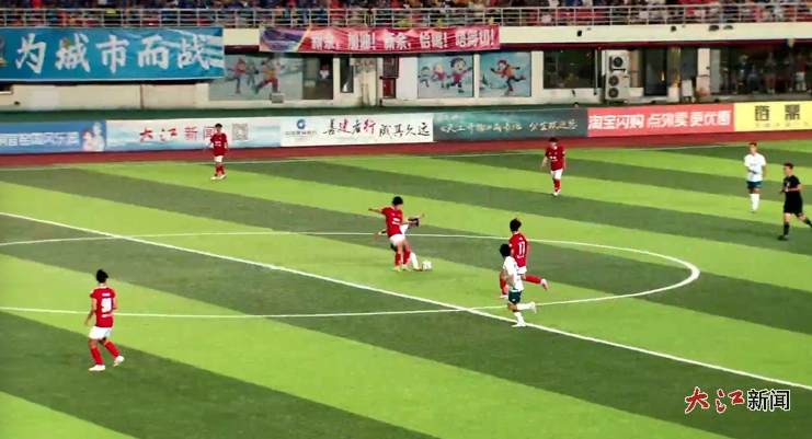 易边再战,主场球迷的助威声中,新余队逐渐找回节奏。新余队39号球员李永康在禁区内接到队友妙传,面对两名后卫的包夹冷静推射,直挂球门死角,帮助新余队将比分扳为1:1平。此后双方互有攻守,最终各取1分握手言和。