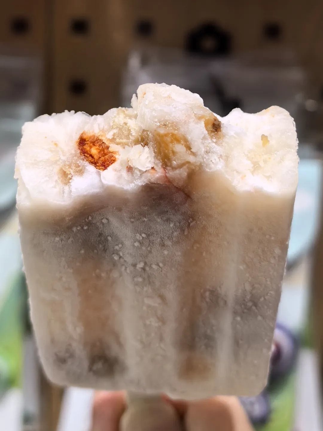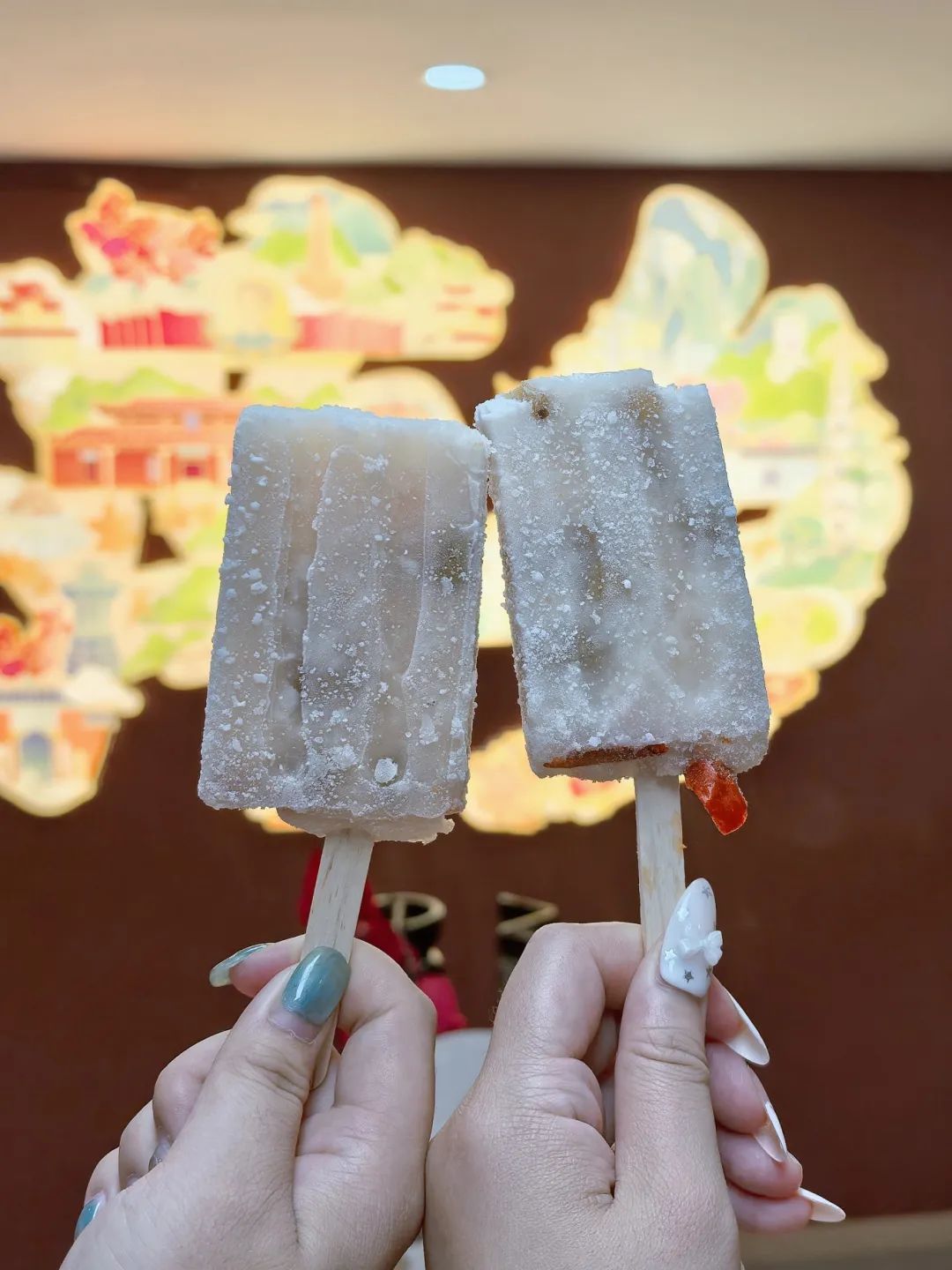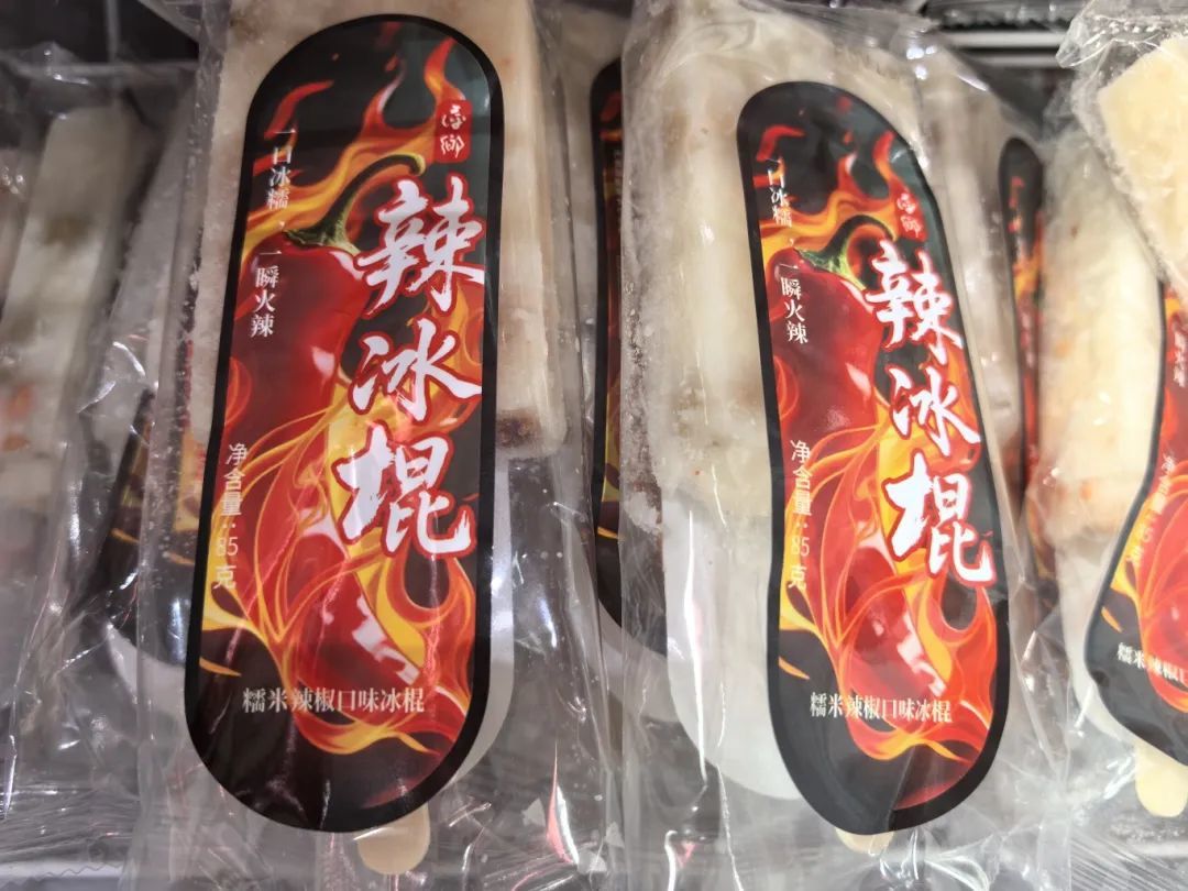 这“辣冰棍”究竟是啥滋味呢?好奇心拉满的小布,赶紧入手了一支。剥开包装,迫不及待咬上一口——咦?第一口竟带着浓浓的童年回忆,像极了小时候吃过的糯米冰棍。 但,惊喜在后头!几口下去,一股恰到好处的辣意开始蔓延。仔细一看,原来里面藏着辣椒和葡萄干。口感层次丰富,辣味不浓不淡,既提神又不上头。