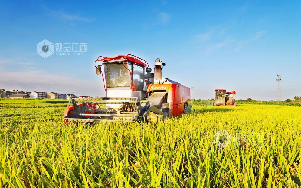 眼下,江西省新余市15万亩再生稻迎来丰收季,当地农民抢抓晴好天气,加紧收割头茬再生稻,田间地头一派繁忙景象。图为8月11日,江西省新余市渝水区珠珊镇丰溪村高标准农田,农机手驾驶农机收割再生稻。 视觉江西 廖海金 摄