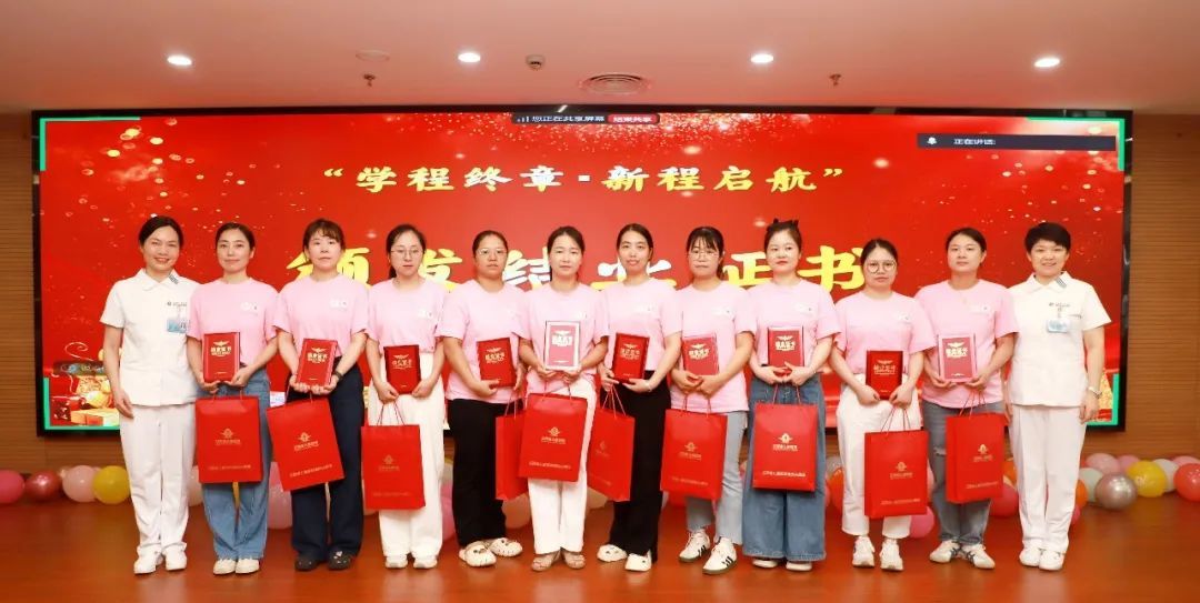 江西省护理学会专科护理发展工作委员会副主任委员刘晓姝为个案汇报答辩中获“优秀案例奖”的六位学员颁发荣誉证书,江西省儿科护理专委会主任委员易琼、江西省儿童医院护理部副主任聂娇共同为学员颁发结业证书。