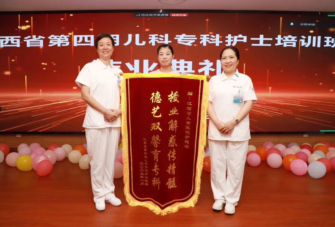 8月8日,江西省儿童医院举办第四期江西省儿科专科护士培训班结业典礼。培训采用线上线下相结合,共20名学员顺利结业。江西省儿童医院党委委员、副院长吴华平出席并致辞,江西省儿科专科护士培训班负责人辛萍主持。